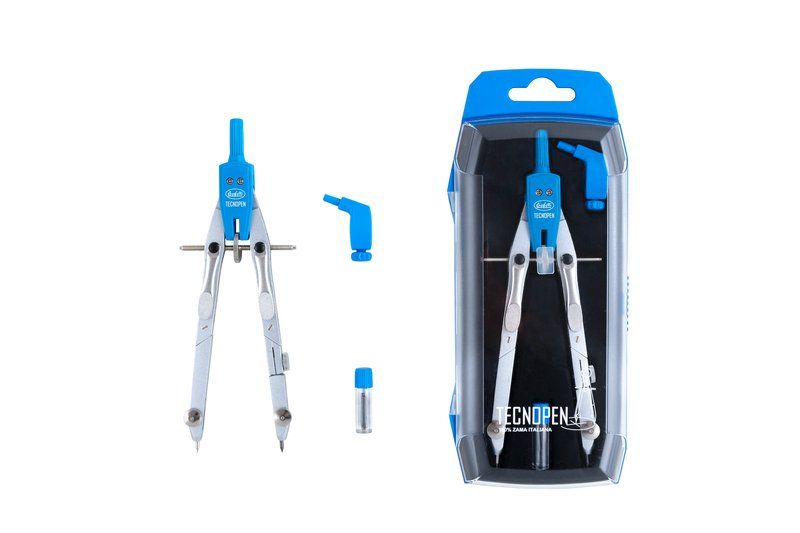 COMPASSO BALAUSTRONE DOPPIO SNODO - DIAMETRO CERCHIO FINO A 320 MM COLORI ASSORTITI.Balaustrone in zama 100% italiana con levette ad apertura rapida e doppio snodo. Regolazione micrometrica tramite rotella centrale. Entrambe le aste con giunto di articolazione. Lunghezza 170 mm. Cerchio fino a Ø 320 mm. Punta intercambiabile Ø 4 mm. Portamine con 3 mine di riserva e 1 Portamatita Ø 4 mm con innesto universale. Astuccio in plastica 185x85 mm. DISPONIBILE IN ROSA BLU NERO.