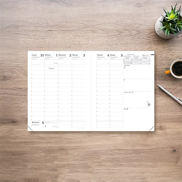 Agenda settimanale con presentazione della settimana su 2 pagine per avere una visione panoramica in un solo colpo d'occhio