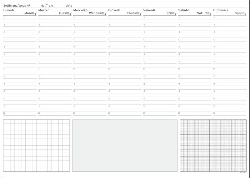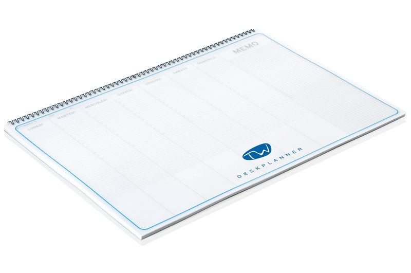 Ampio spazio di scrittura per questo planner in carta bianca con spirale e copertina sintetica.