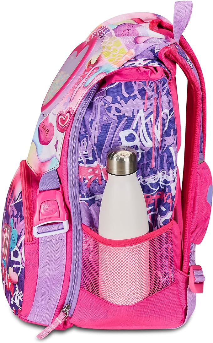Zaino Scuola Sdoppiabile Big Sj Gang Sphere Full Girl.Dimensioni e Capacità: 27 x 41 x 16 (+6) cm; espandibile da 22 a 29 litri versatile per carichi di studio variabili.Comfort Ergonomico: Schienale con design preformato nei punti di contatto e fondo integrato oltre a spallacci imbottiti e sagomati rivestiti in tessuto e rete per supporto ottimale.Organizzazione Intuitiva: Dotato di tasca frontale tasca su pattina e tasca in rete porta borraccia perfette per mantenere tutto organizzato e facilmente accessibile.Dettagli Innovativi: Zaino con zip estensibili inserti rifrangenti per sicurezza e un cuore trasparente su pattina con palline colorate mobili attivabili da un sistema ad aria integrato nello spallaccio.Materiali Resistenti: Costruito in poliestere durevole progettato per resistere all’uso quotidiano e mantenere il suo aspetto vivace.