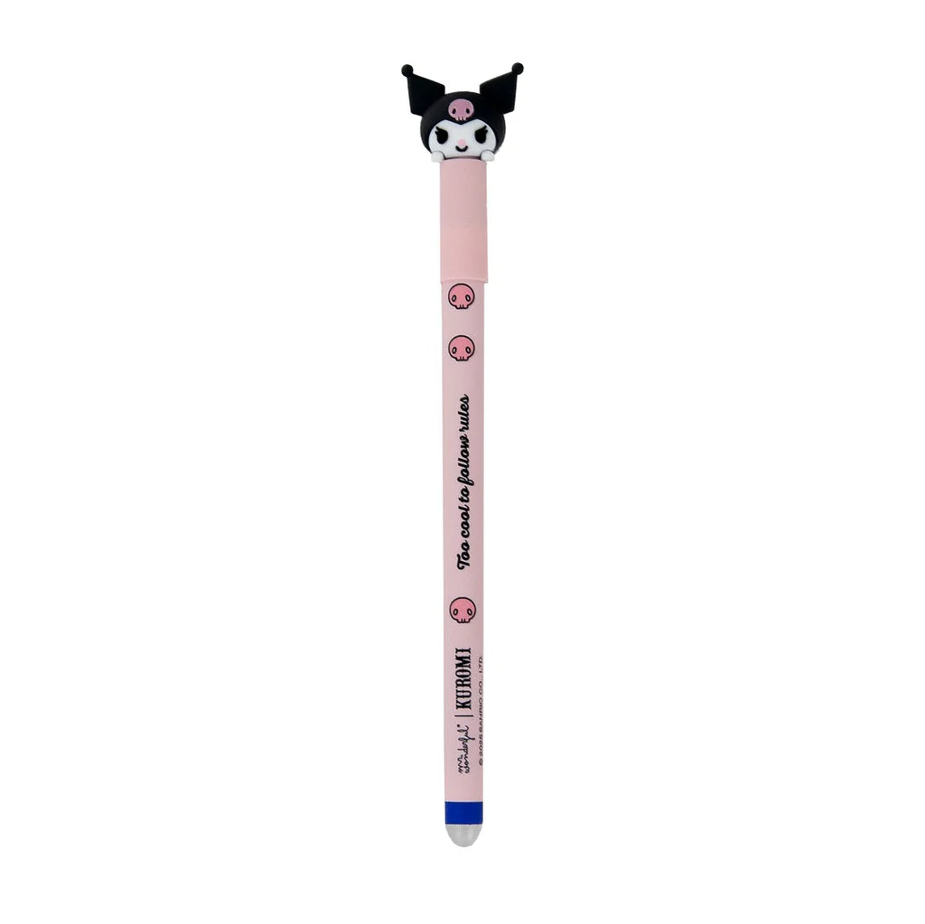 Penna con inchiostro cancellabile di colore blu e Kuromi l’amica più ribelle di Hello Kitty su un’estremità.