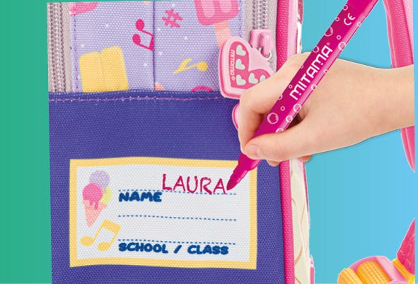 Un comodo spazio per scrivere il proprio nome e non rischiare di perdere lo zainetto.