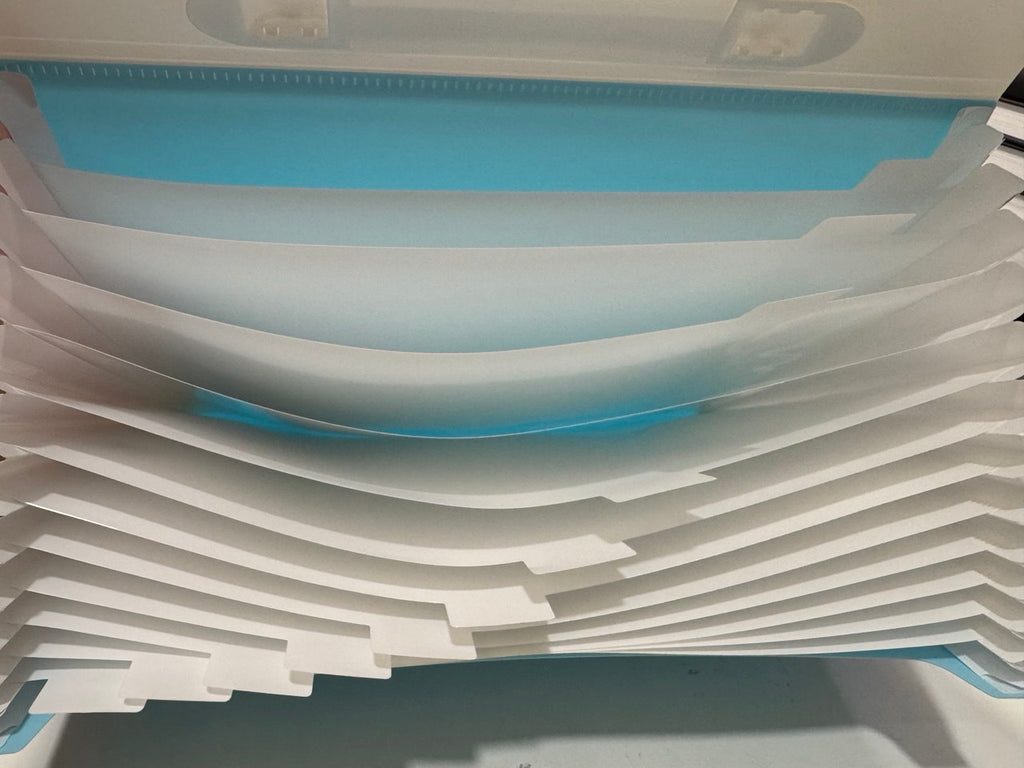 I 13 scomparti a soffietto; permettono di suddividere con precisione i vari fogli facilitando l’organizzazione di ricevute fatture e altri documenti.