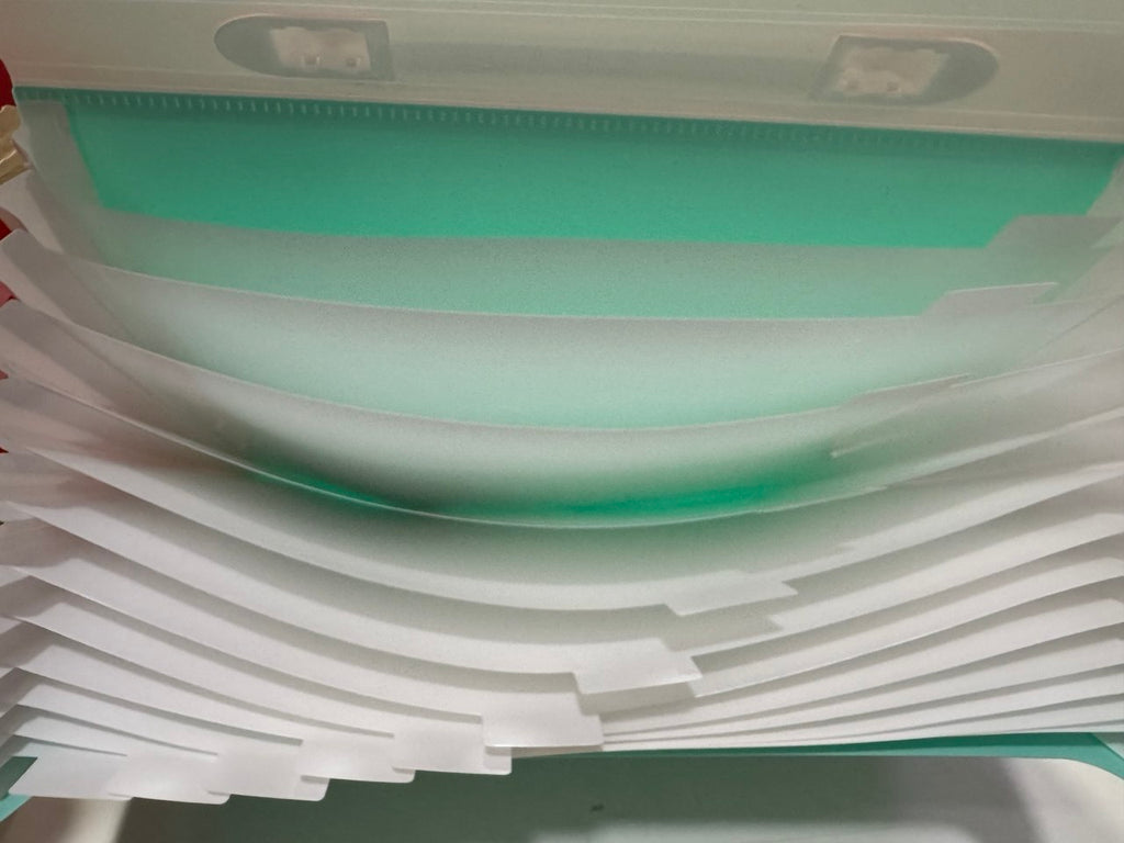I 13 scomparti a soffietto; permettono di suddividere con precisione i vari fogli facilitando l’organizzazione di ricevute fatture e altri documenti.