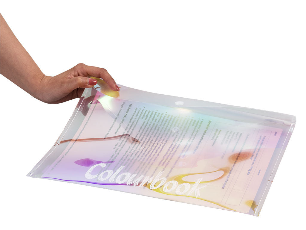 Busta portadocumenti in formato A4 realizzata in PPL spessorato iridescente formato A4.
