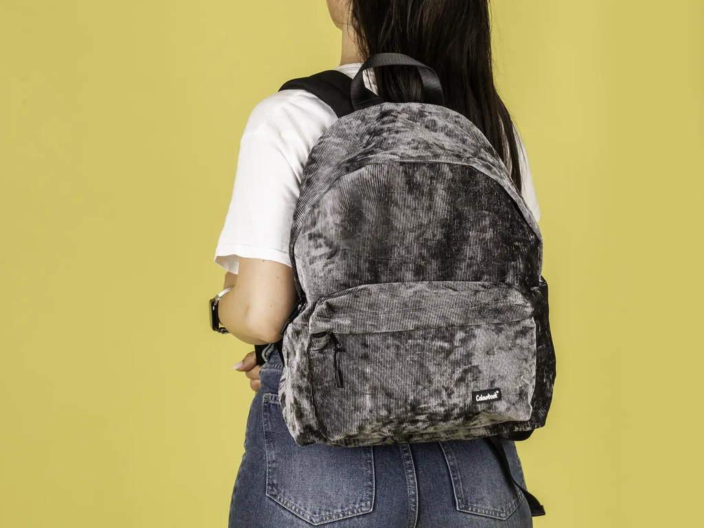 Realizzato in velluto a coste noto anche come corduroy questo zaino si distingue per il suo tessuto morbido e resistente caratterizzato da eleganti costolature in rilievo che donano un tocco vintage e sofisticato.