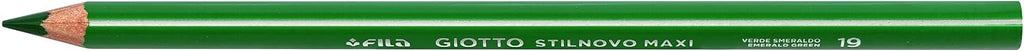Pastelli Giotto Stilnovo Maxi con fusto triangolare verniciato nel colore della mina con spigoli e bottone color argento.