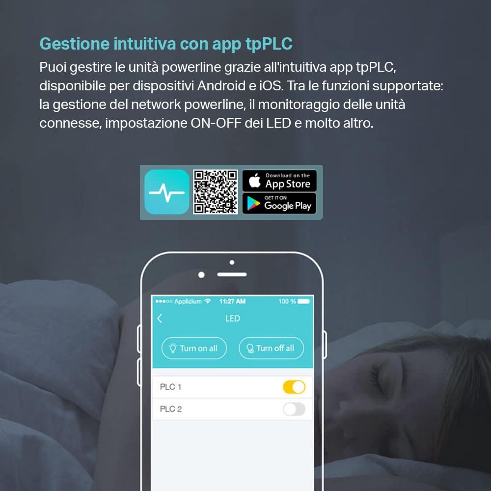 Kit Powerline AV1000 con porta Gigabit Streaming HD gaming.Standard HomePlug AV2 - Velocità di trasferimento dati fino a 1000Mbps.Porta Gigabit LAN - Connessione cablata sicura per desktop Smart Tv o console di gioco.Plug & Play - Nessuna configurazione richiesta.Modalità Power Saving - Riduce automaticamente i consumi fino all'85%.